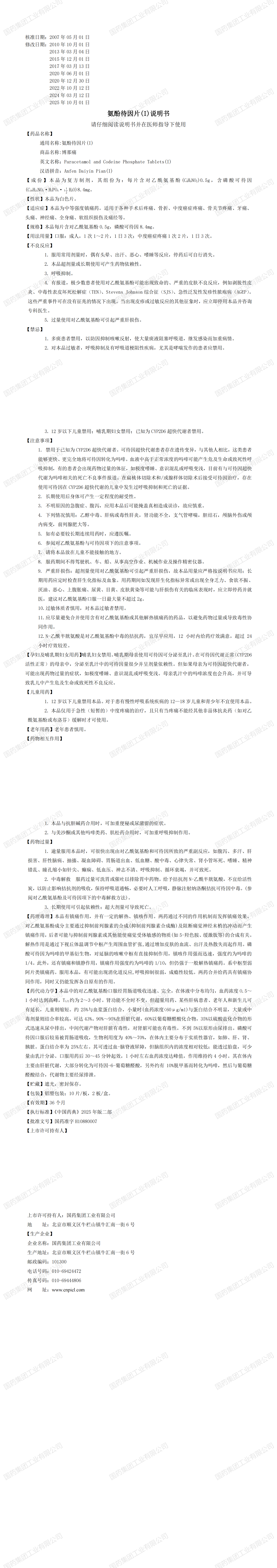 【商品名称】博那痛【英文名称】Paracetamol and Codeine Phosphate Tablets(I)