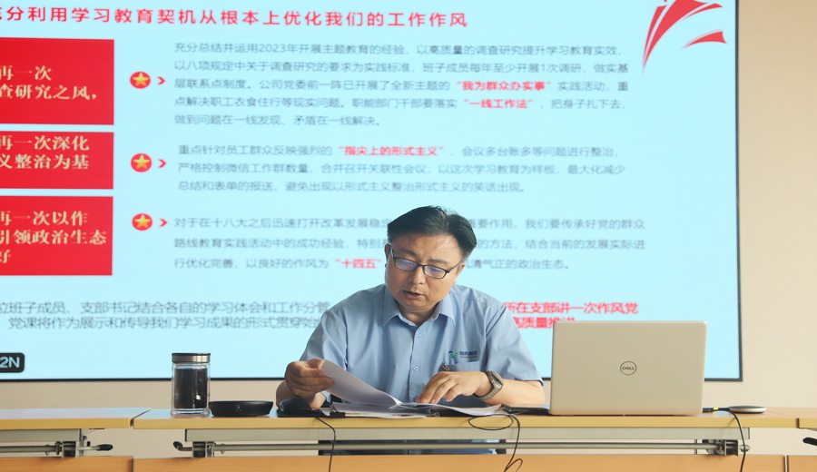刘统斌在总结讲话中强调,深入贯彻中央八项规定精神学习教育不是一蹴而就的,而是一项长期的政治任务,要确保当前学习教育任务圆满完成,同时又要着眼长效发展,为今后持续深入贯彻中央八项规定精神奠定坚实基础。刘统斌对下一步做好学习教育工作提出六点要求:一是要坚持政治引领,筑牢思想根基;二是要坚持以上率下,强化头雁效应;三是要坚持制度固本,健全长效机制;四是要坚持问题导向,深化专项整治;五是要坚持文化浸润,厚植清廉根基;六是要坚持数字赋能,提升监督效能。他要求,全体干部职工要以中央八项规定精神为指引,努力学习好、运用好党的理论知识和经验做法,持之以恒正风肃纪,以高度的政治责任感和使命感,认真落实好各项要求,扎实做好各项工作,推动学习教育取得更加丰硕的成果,以优异成绩迎接党的104岁生日,为公司改革发展作出新的更大贡献!