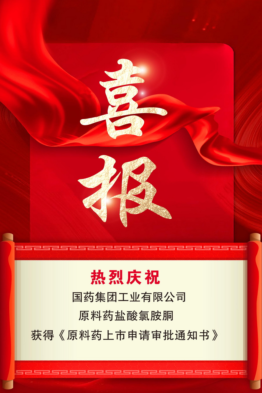 近日,国药工业收到国家药品监督管理局核准签发的《化学原料药上市申请批准通知书》,批准原料药盐酸氯胺胴上市申请。